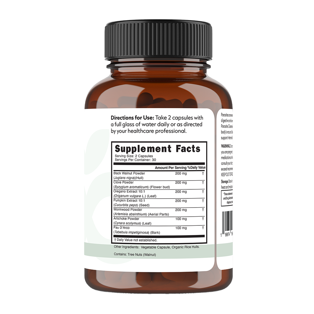 - 🌰 Black Walnut Hull (200 mg) – A traditional favorite containing juglone and tannins, long used to support intestinal cleansing